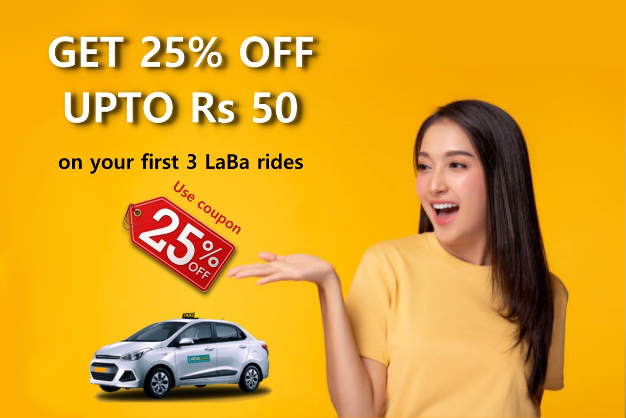 Get a cab and enjoy savings of up to Rs.50 on your first ride! Huge savings up to 25% await you with LaBa Promo Coupon Today. Book a ride now!